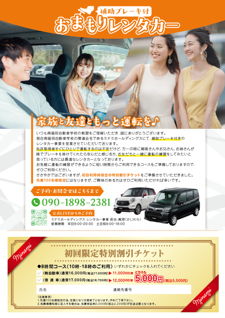概要:補助ブレーキ付レンタカー事業の紹介チラシ