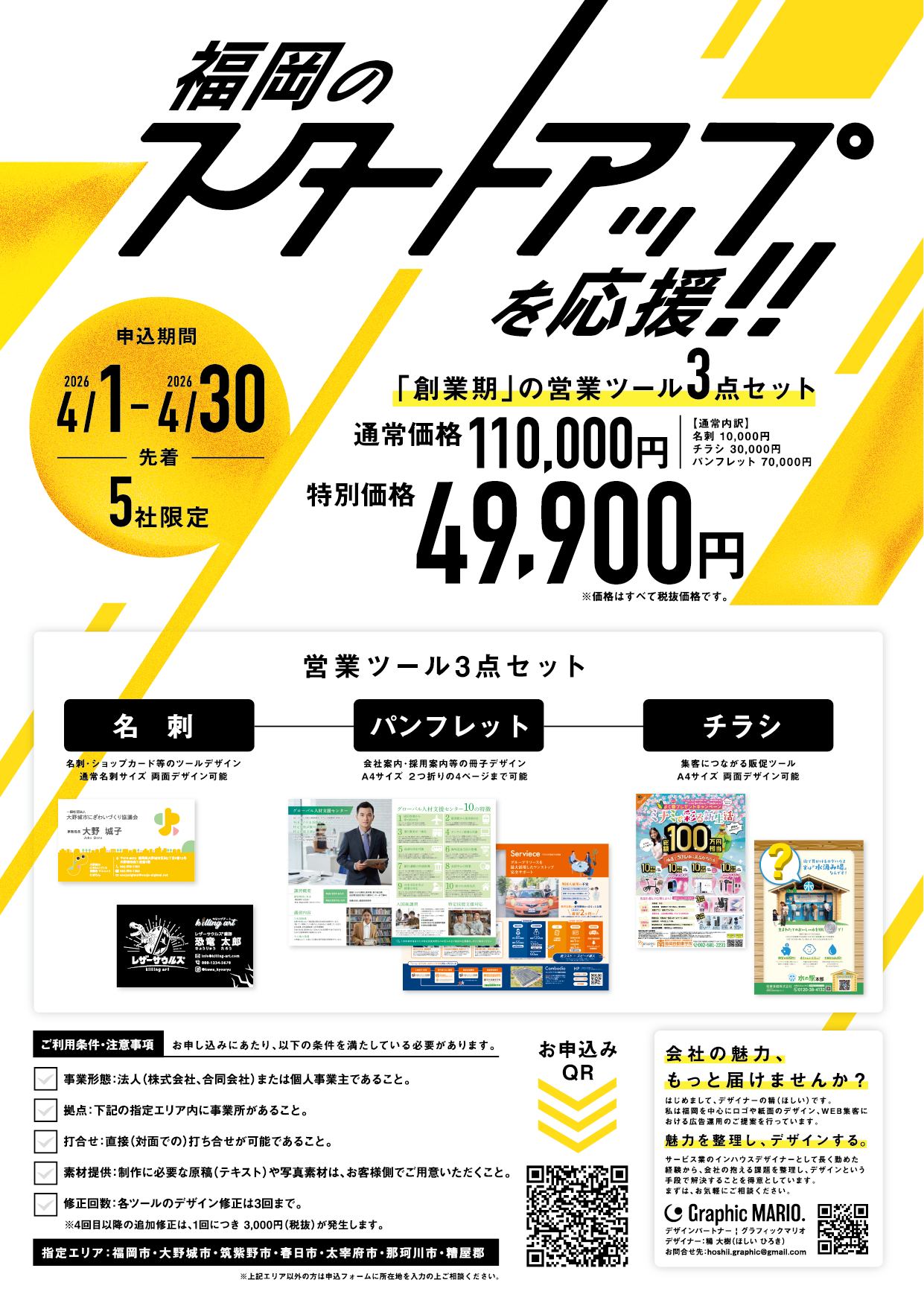 起業・スタートアップ時に必要不可欠な営業ツール3点をセットにした特別パッケージを期間限定で特別価格にてご案内!